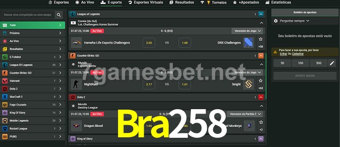 A aposta Bra258 oferece aos jogadores a experiência mais conveniente de apostas em eSports!